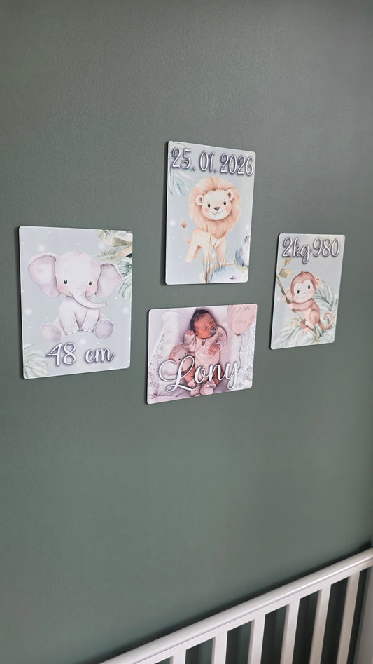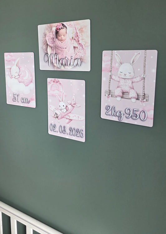 Plaque souvenir de naissance ( avec support en bois inclus )