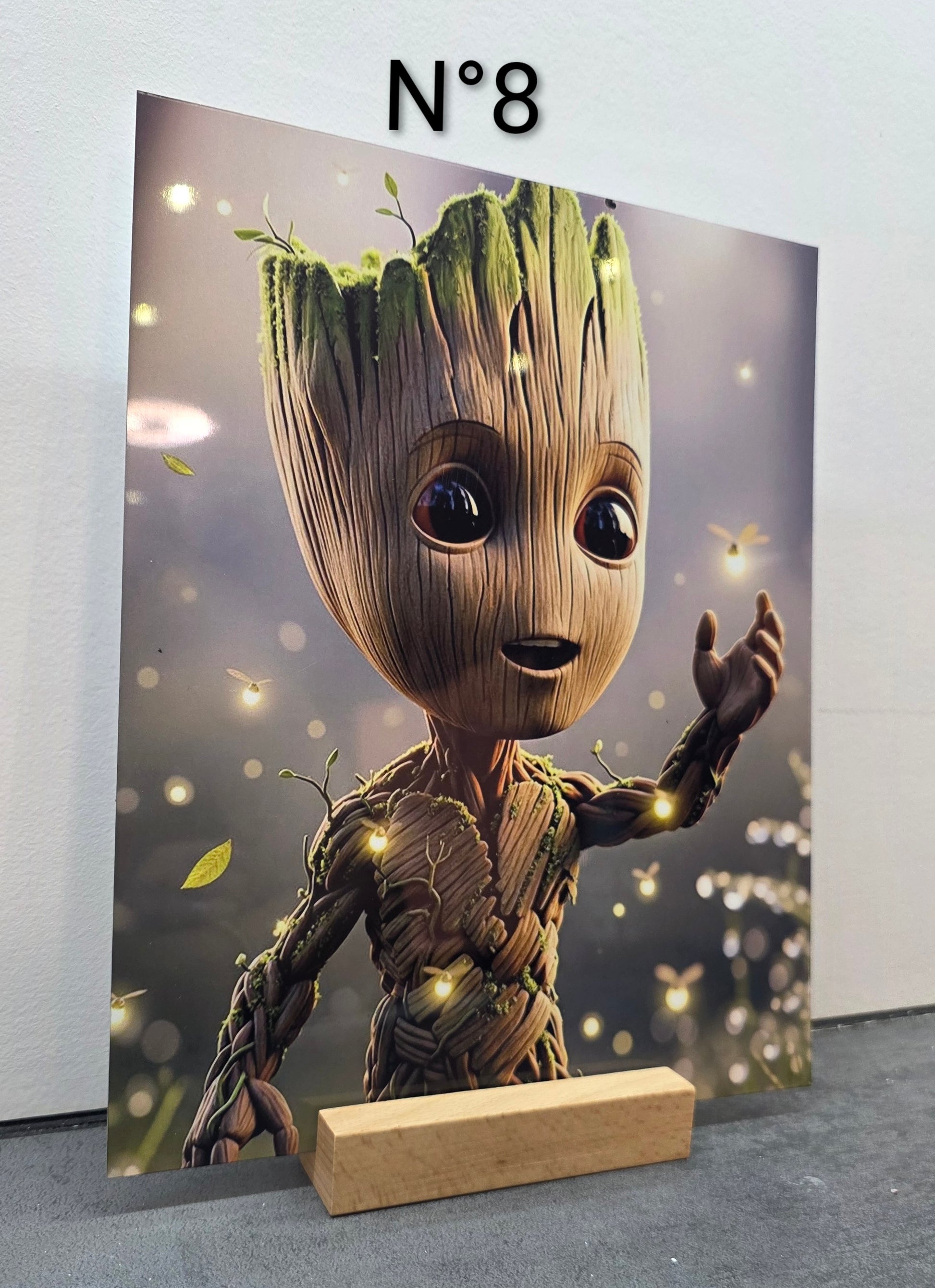 Plaque Métal Manga - Stitch - Pokémon... avec support en bois